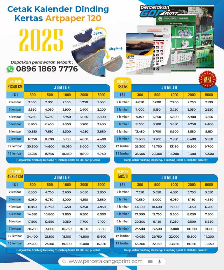 Mengingat jumlah kebutuhan yang cukup tinggi dan kualitas yang perlu diperhatikan, sehingga Anda dan pebisnis lainnya cenderung mencari harga cetak kalender tahun 2025 yang murah dan hemat, tetapi kualitas cetaknya tetap bagus.