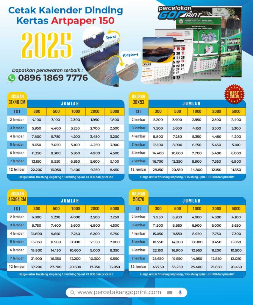 Pilihan ukuran kalender poster 2024 di Surabaya